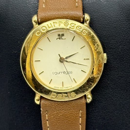 25mm Working Ladies Vintage Courreges Paris 4N01-0220 Gold Plated Quartz Watch