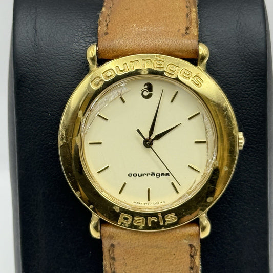 30mm Working Ladies Vintage Courreges Paris 5Y31-1000 Gold Plated Quartz Watch