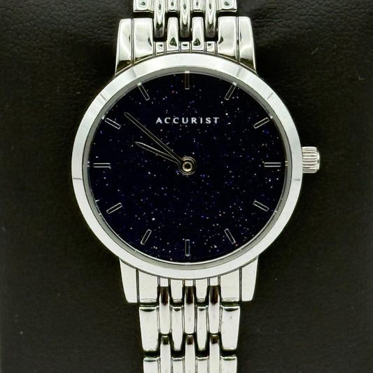 Accurist Ladies Quartz Watch Sparkle Dial Silver Steel Bracelet Working 25mm