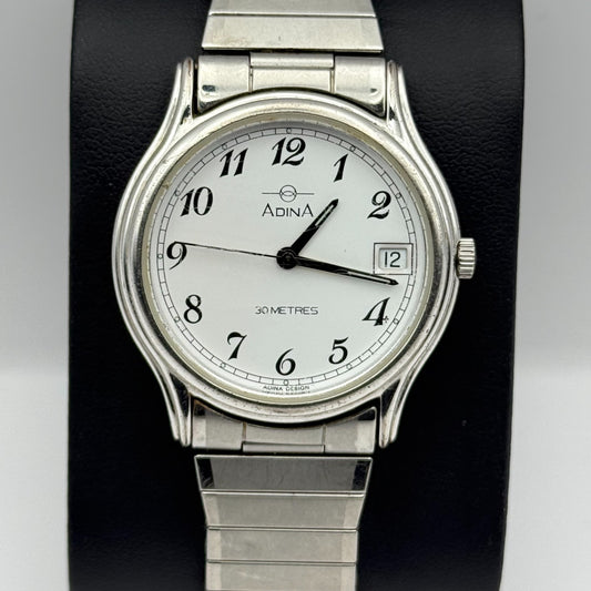 Adina Design Ladies Quartz Watch Date Dial Silver Tone Stretch Band Working 33mm