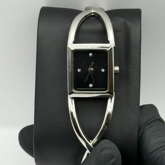 Avon Ladies Quartz Watch Black Square Dial Silver Tone Bracelet Working 19mm