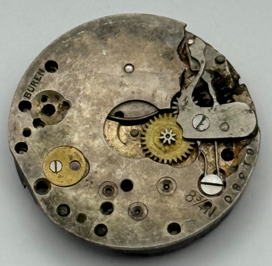 Buren 8 3/4 15 Jewels Watch Movement Manual Wind Vintage Parts Repair 19.7mm