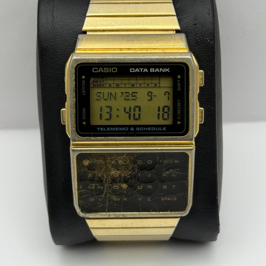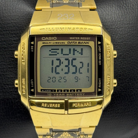 Casio Men’s Illuminator Quartz Watch Data Bank Dual Time Gold Tone Working 35mm
