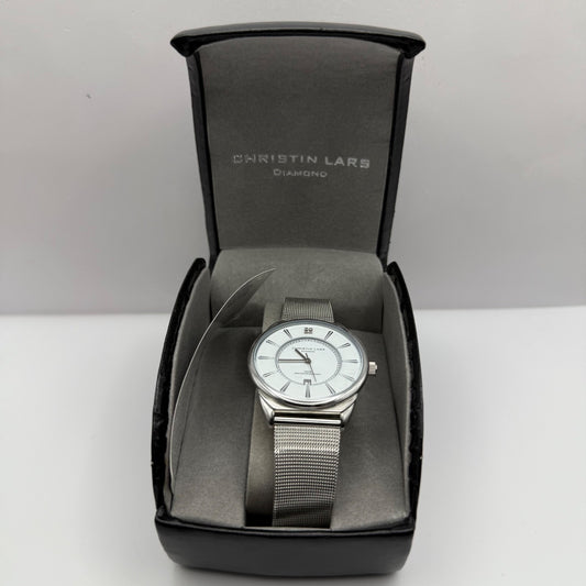Christian Lars Diamond Watch Boxed 42mm Unisex Date Dial Steel Boxed 7 Inches