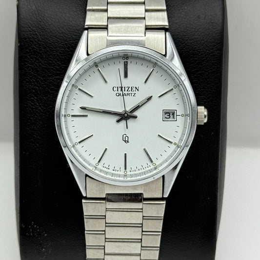 Citizen CQ Quartz Watch 6110-073185 Date Silver Tone Japan 30mm PARTS REPAIR