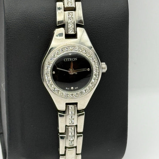 Citron BLC202 Ladies Quartz Watch Black Dial Silver Tone Bracelet Working 21mm