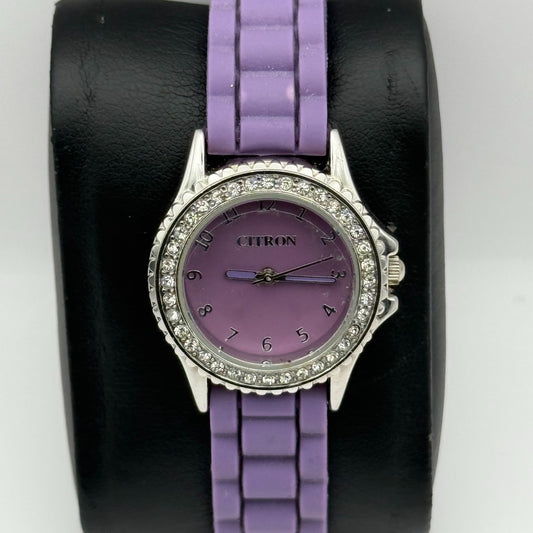 Citron Ladies Quartz Watch Crystal Accents Purple Strap Working 27mm New Battery