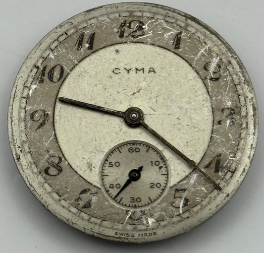 Cyma 424K Watch Movement Manual Wind Vintage Swiss Incomplete Parts Repair 19.6m