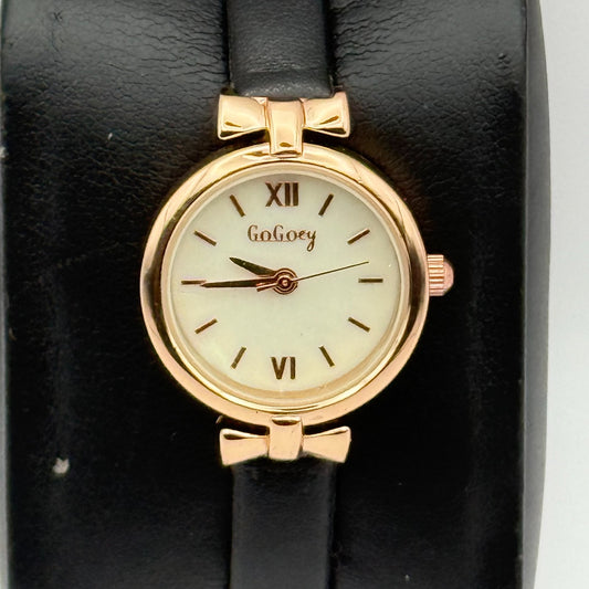 GoGoey Ladies Quartz Watch Mother of Pearl Dial Black Strap Working 24mm