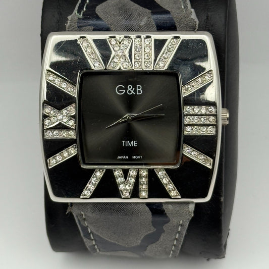 G&B Time Fashion Ladies Quartz Watch Crystal Accents Leather Strap Working 42mm