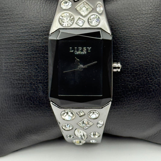 Lipsy London Ladies Quartz Watch Rectangular Black Dial Bracelet Working 22mm
