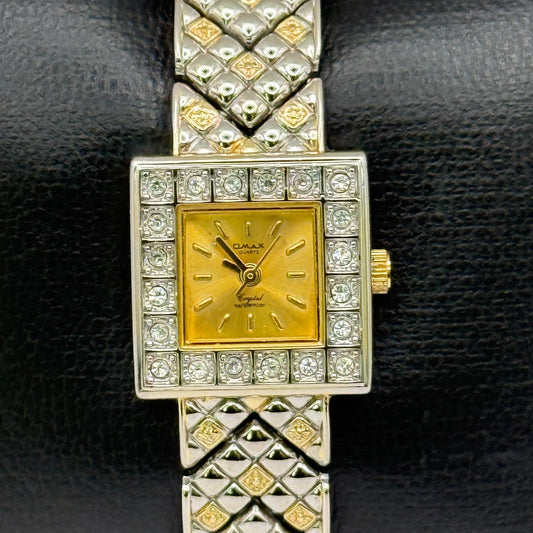 Omax Ladies Quartz Watch Crystal Accent Two-Tone Bracelet Japan Working 19mm