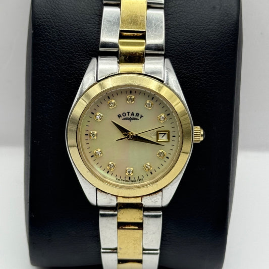 Rotary Ladies Watch Two Tone Mother Of Pearl Date Dial 27mm Working LB03499/401