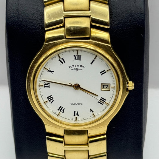Rotary Unisex Quartz Watch White Date Dial Gold Tone Bracelet 33mm PARTS REPAIR