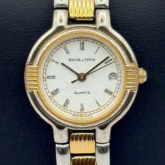 Solvil Et Titus Ladies Quartz Watch Date Dial Two Tone Bracelet Working 25mm