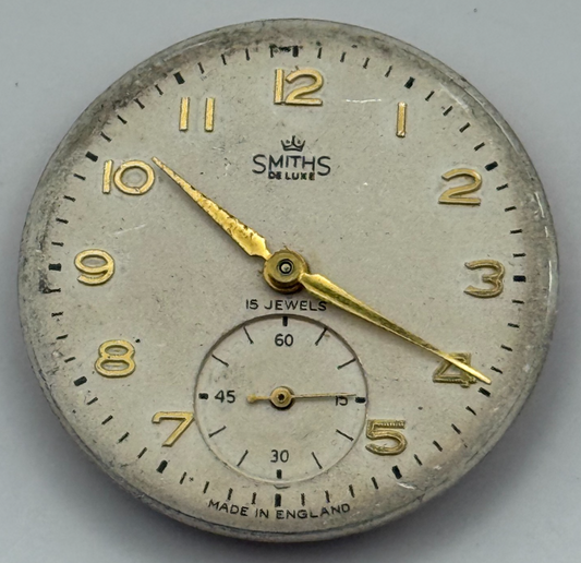 Smiths De Luxe 44 15 Jewels Watch Movement Manual Wind Vintage Parts 29.1mm