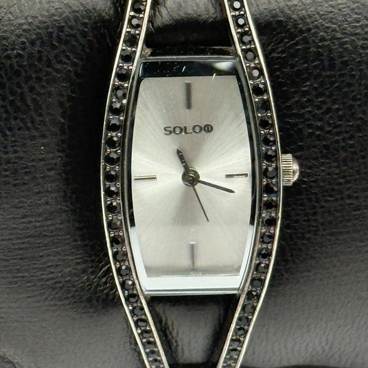 Solo Ladies Quartz Watch Black Dial Rhinestone Accents Bracelet Working 19mm