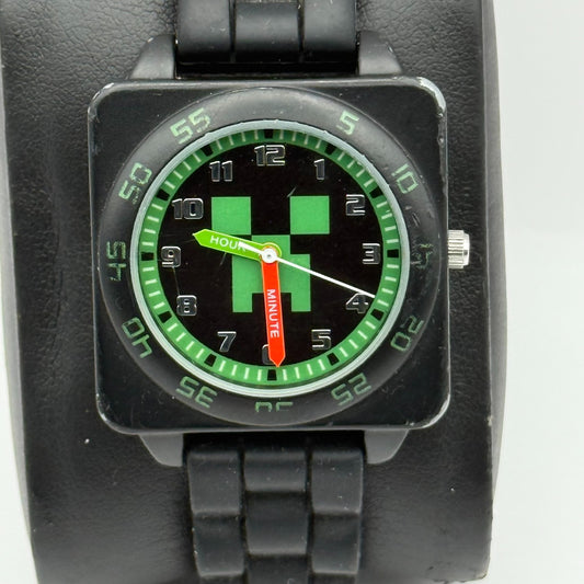 Minecraft Time Teacher Children Quartz Watch Black Strap Japan Working 32mm