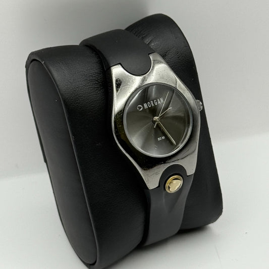 Morgan De Toi Ladies Quartz Watch Silver Tone Case Black Strap Working 28mm