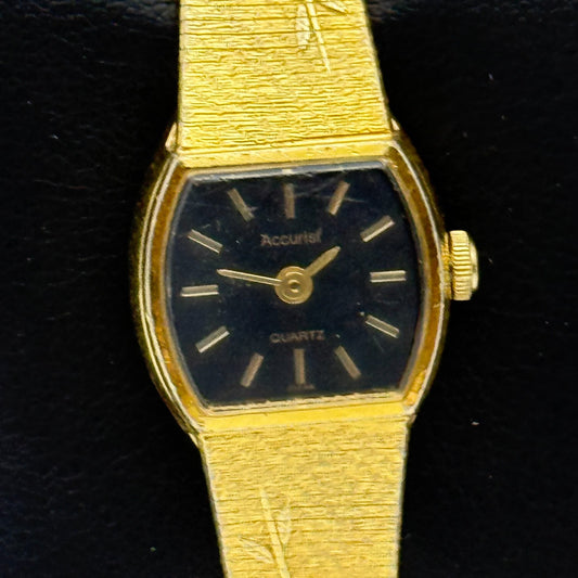 16mm Working Ladies Vintage Accurist Gold Plated Japan Quartz Watch 6 Inches