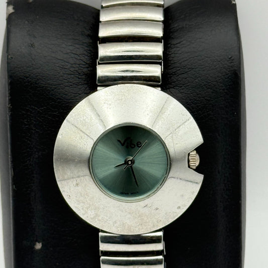 Vibe Ladies Quartz Watch Green Dial Silver Tone Stretch Band Steel Working 26mm